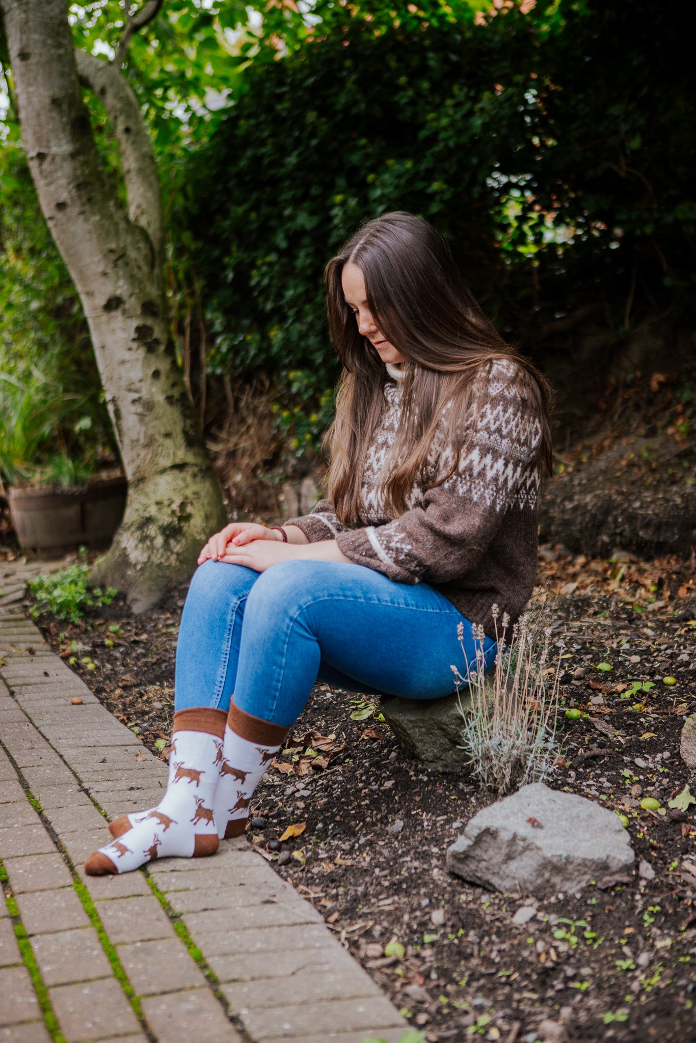 Brown Goat Crew Socks